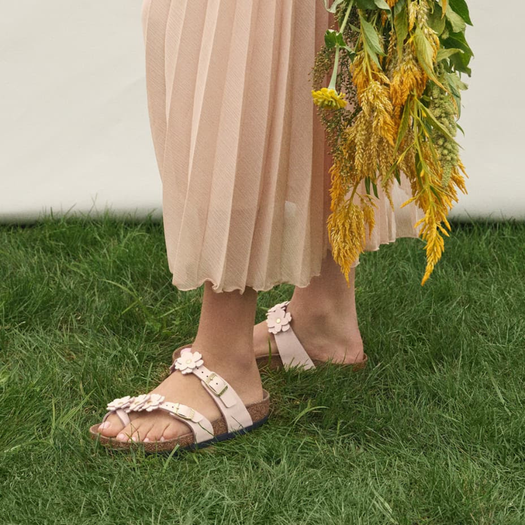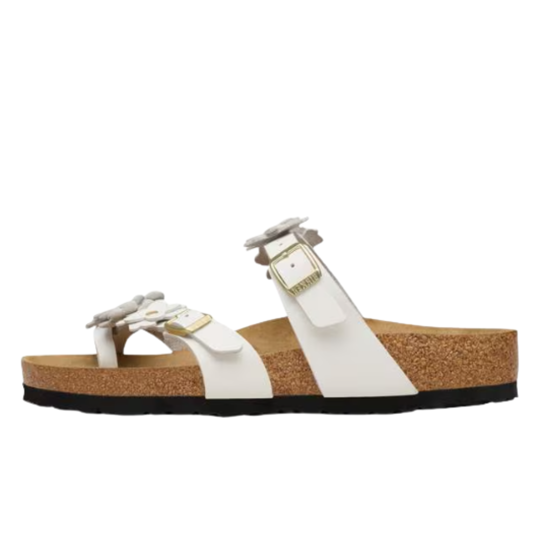 The Birkenstock Mayari Flowers features a distinctive toe loop and delicate appliqué floral detail, this style brings an elegant, feminine touch to any wardrobe. Crafted from premium soft natural leather, the Mayari delivers the signature support and durability Birkenstock is known for, making it perfect for those who refuse to compromise between style and wearability.