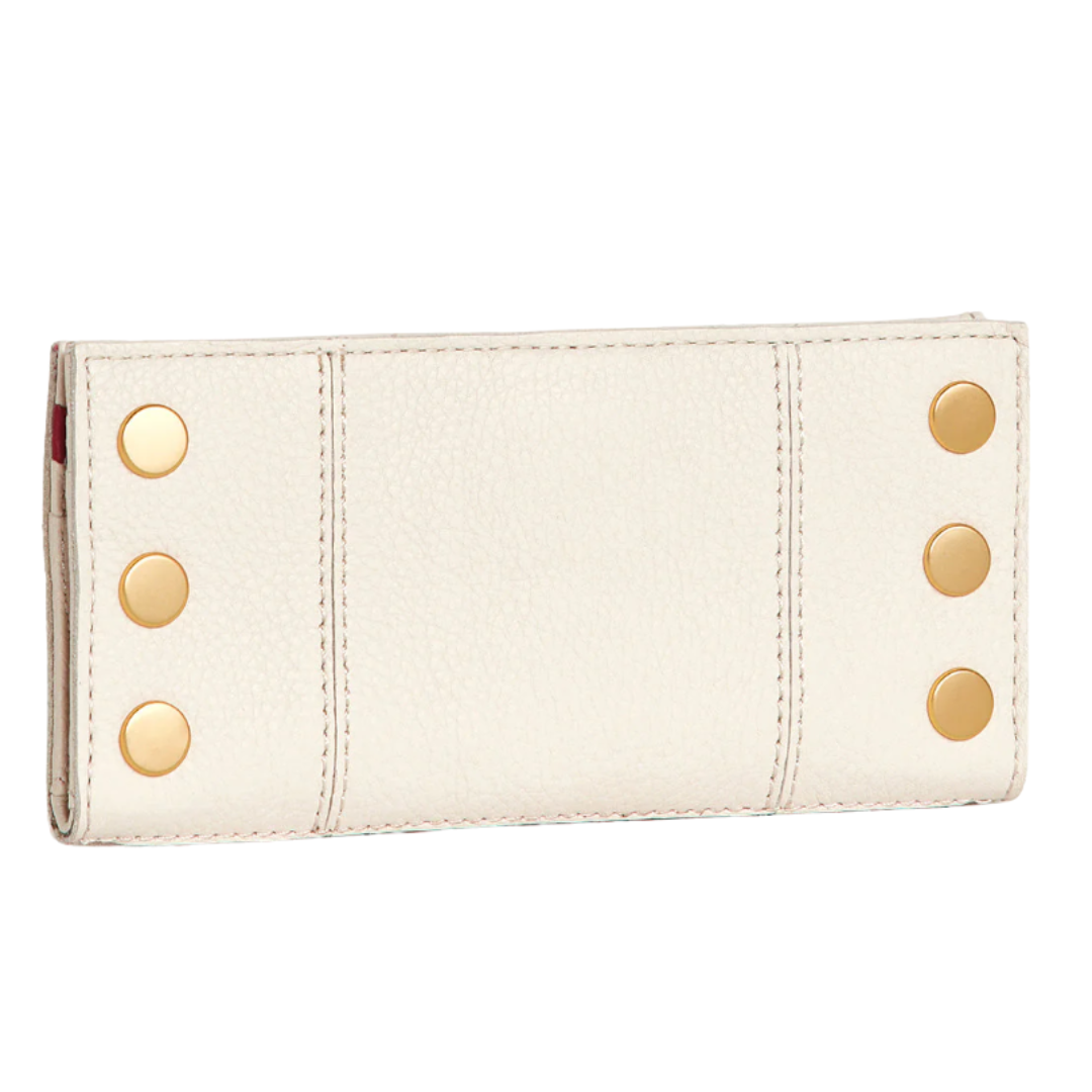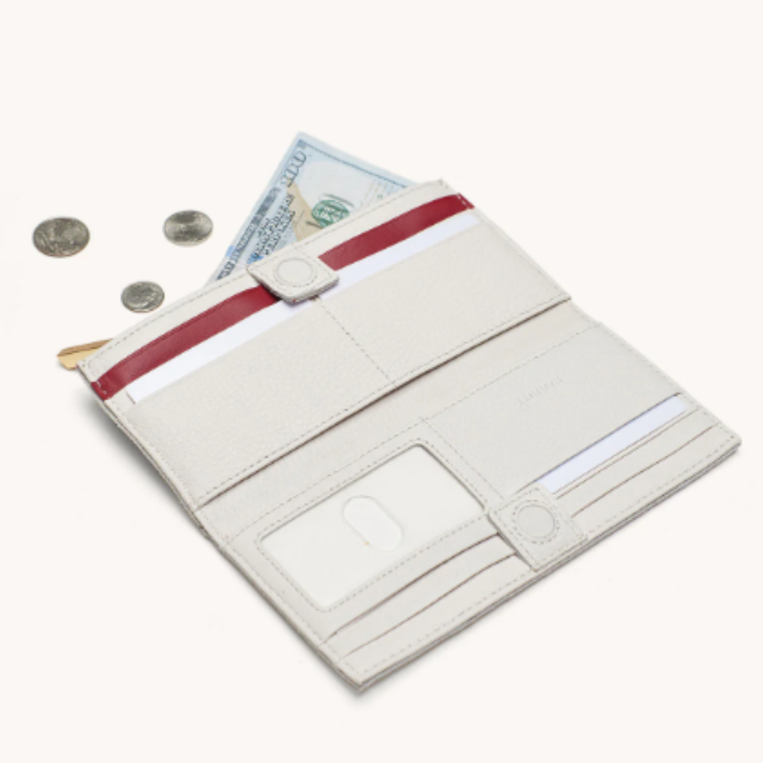 The Hammitt 110 North, named after the freeway that never stops moving. Whether you're heading downtown or across town, this folding essential keeps your finances in order with 10 card slots, a clear ID window for quick access, a secure zippered compartment, and two dedicated pockets for different currencies.